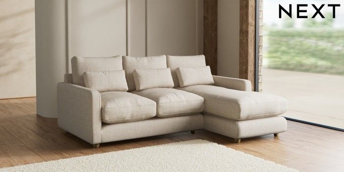 7.2.6 Buy N Premium Farndon Grand Relaxed Sit Medium Sofa Chaise - Right Hand Chunky Weave Mid Natural Wooden Glide - Light from the Next UK online shop Click here to use our accessible website