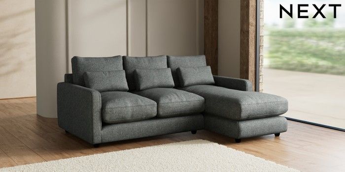 7.2.6 Buy N Premium Farndon Grand Relaxed Sit Medium Sofa Chaise - Right Hand Cotswold Chenille Dark Grey Wooden Glide - Dark from the Next UK online shop Click here to use our accessible website