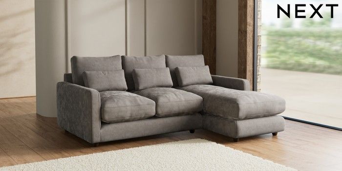 7.2.6 Buy N Premium Farndon Grand Relaxed Sit Medium Sofa Chaise - Right Hand Distressed Velour French Grey Wooden Glide - Mid from the Next UK online shop Click here to use our accessible website