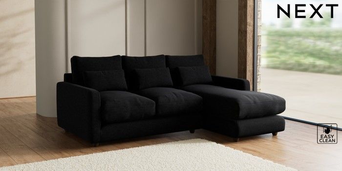 7.2.6 Buy N Premium Farndon Grand Relaxed Sit Medium Sofa Chaise - Right Hand Fine Chenille Easy Clean Black Wooden Glide - Mid from the Next UK online shop Click here to use our accessible website