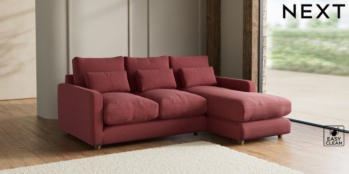 7.2.6 Buy N Premium Farndon Grand Relaxed Sit Medium Sofa Chaise - Right Hand Fine Chenille Easy Clean Mid Pink Wooden Glide - Light from the Next UK online shop Click here to use our accessible website