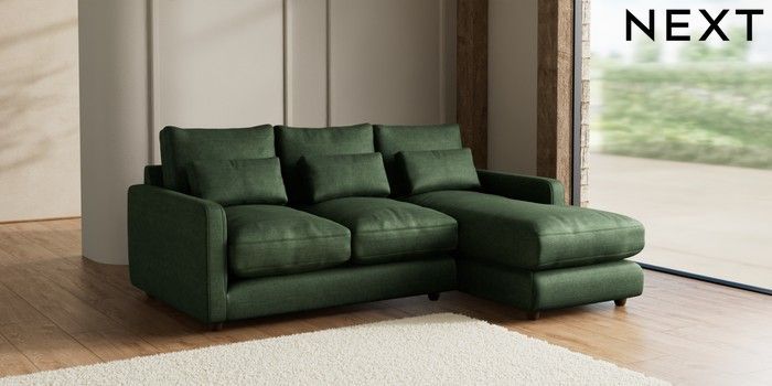 7.2.6 Buy N Premium Farndon Grand Relaxed Sit Medium Sofa Chaise - Right Hand Luxe Chenille Dark Green Wooden Glide - Mid from the Next UK online shop Click here to use our accessible website