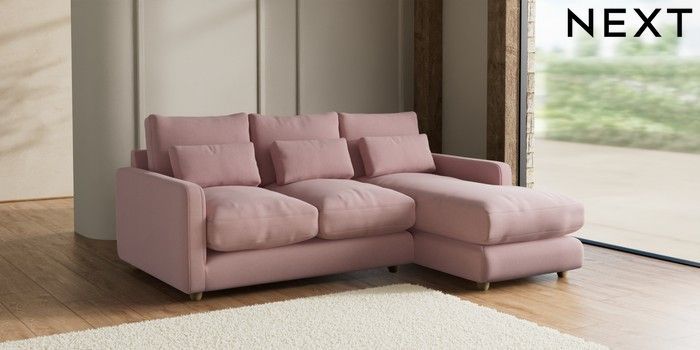 7.2.6 Buy N Premium Farndon Grand Relaxed Sit Medium Sofa Chaise - Right Hand Natural Mix Light Rose Pink Wooden Glide - Light from the Next UK online shop Click here to use our accessible website
