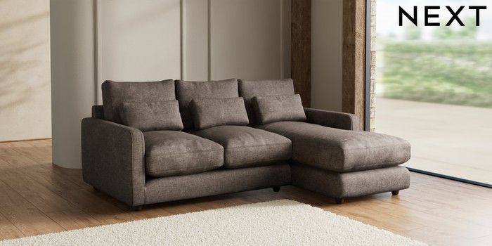 7.2.6 Buy N Premium Farndon Grand Relaxed Sit Medium Sofa Chaise - Right Hand Plush Chenille Mink Brown Wooden Glide - Mid from the Next UK online shop Click here to use our accessible website