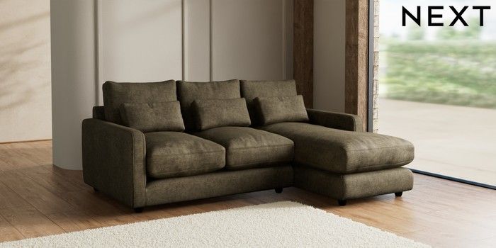 7.2.6 Buy N Premium Farndon Grand Relaxed Sit Medium Sofa Chaise - Right Hand Plush Chenille Moss Green Wooden Glide - Dark from the Next UK online shop Click here to use our accessible website