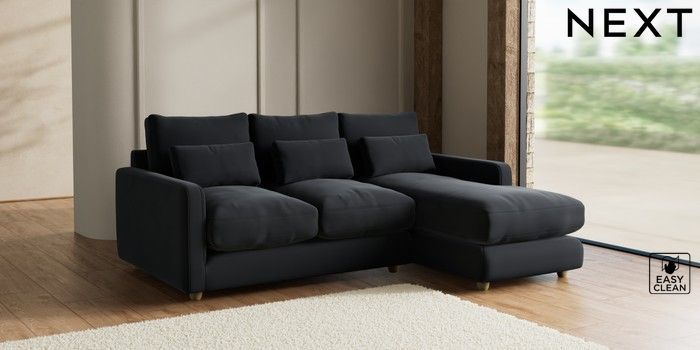 7.2.6 Buy N Premium Farndon Grand Relaxed Sit Medium Sofa Chaise - Right Hand Plush Velvet Easy Clean Charcoal Grey Wooden Glide - Light from the Next UK online shop Click here to use our accessible website