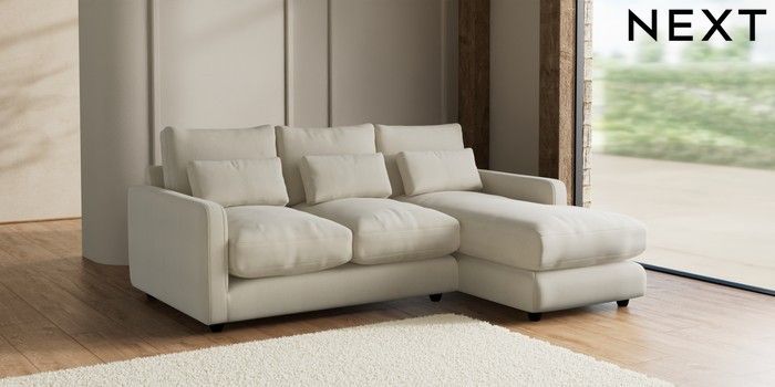 7.2.6 Buy N Premium Farndon Grand Relaxed Sit Medium Sofa Chaise - Right Hand Relaxed Linen Look Oyster Wooden Glide - Dark from the Next UK online shop Click here to use our accessible website