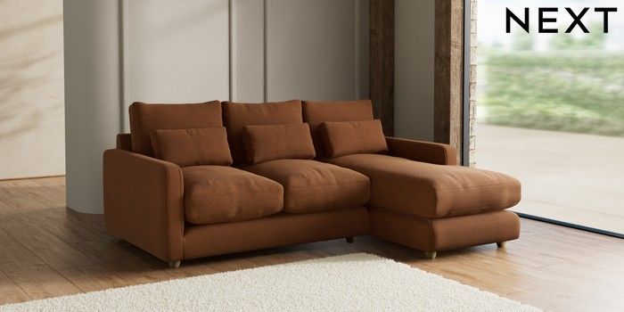 7.2.6 Buy N Premium Farndon Grand Relaxed Sit Medium Sofa Chaise - Right Hand Ripple Chenille Mid Rust Brown Wooden Glide - Light from the Next UK online shop Click here to use our accessible website