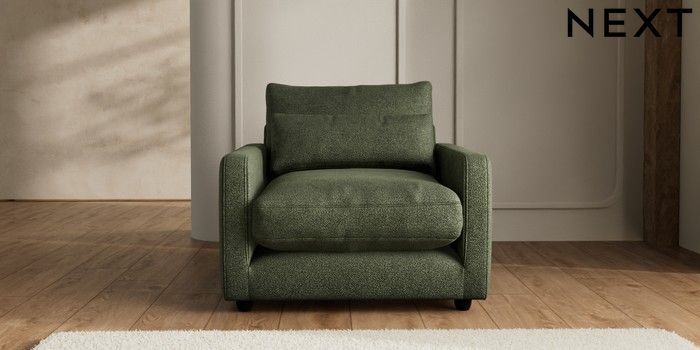 7.2.6 Buy N Premium Farndon Grand Relaxed Sit Snuggle Boucle Chenille Dark Moss Green Wooden Glide - Dark from the Next UK online shop Click here to use our accessible website