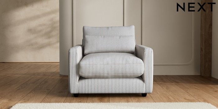 7.2.6 Buy N Premium Farndon Grand Relaxed Sit Snuggle Chenille Stripe Slate Blue Wooden Glide - Dark from the Next UK online shop Click here to use our accessible website