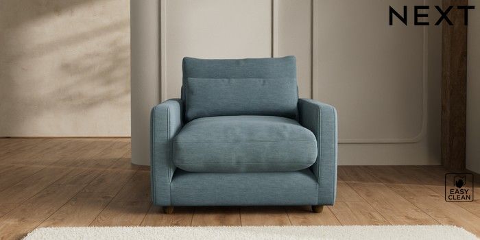 7.2.6 Buy N Premium Farndon Grand Relaxed Sit Snuggle Fine Chenille Easy Clean Mid Blue Wooden Glide - Mid from the Next UK online shop Click here to use our accessible website
