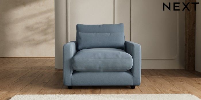 7.2.6 Buy N Premium Farndon Grand Relaxed Sit Snuggle Relaxed Linen Look Mid Blue Wooden Glide - Dark from the Next UK online shop Click here to use our accessible website