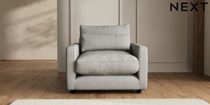 7.2.6 Buy N Premium Farndon Grand Relaxed Sit Snuggle Tweedy Chenille Mid Grey Wooden Glide - Dark from the Next UK online shop Click here to use our accessible website