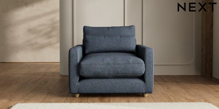 7.2.6 Buy N Premium Farndon Grand Relaxed Sit Snuggle Tweedy Chenille Navy Blue Wooden Glide - Light from the Next UK online shop Click here to use our accessible website