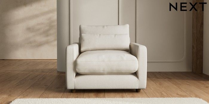 7.2.6 Buy N Premium Farndon Grand Relaxed Sit Snuggle Tweedy Chenille Oyster Wooden Glide - Mid from the Next UK online shop Click here to use our accessible website