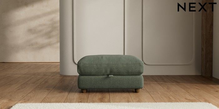7.2.6 Buy N Premium Farndon Grand Relaxed Sit Storage Footstool Chunky Texture Mid Forest Green Wooden Glide - Mid from the Next UK online shop Click here to use our accessible website