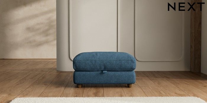 7.2.6 Buy N Premium Farndon Grand Relaxed Sit Storage Footstool Cotswold Chenille Dark Blue Wooden Glide - Mid from the Next UK online shop Click here to use our accessible website