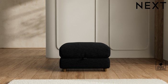 7.2.6 Buy N Premium Farndon Grand Relaxed Sit Storage Footstool Fine Chenille Easy Clean Black Wooden Glide - Mid from the Next UK online shop Click here to use our accessible website