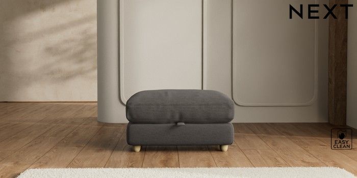 7.2.6 Buy N Premium Farndon Grand Relaxed Sit Storage Footstool Fine Chenille Easy Clean Dark Smoke Grey Wooden Glide - Light from the Next UK online shop Click here to use our accessible website