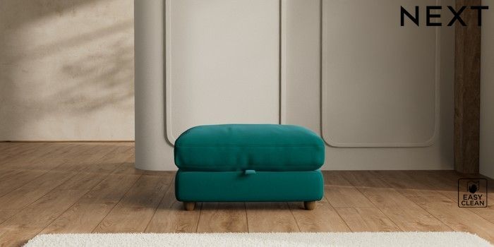 7.2.6 Buy N Premium Farndon Grand Relaxed Sit Storage Footstool Plush Velvet Easy Clean Juniper Green Wooden Glide - Mid from the Next UK online shop Click here to use our accessible website