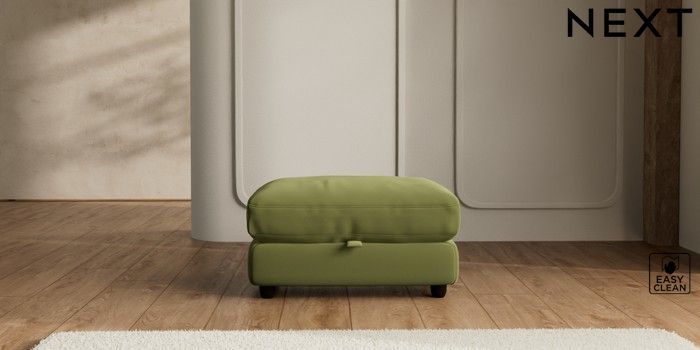 7.2.6 Buy N Premium Farndon Grand Relaxed Sit Storage Footstool Plush Velvet Easy Clean Mid Olive Green Wooden Glide - Dark from the Next UK online shop Click here to use our accessible website