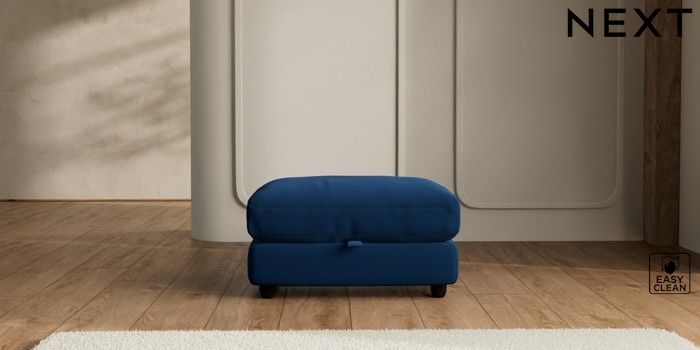 7.2.6 Buy N Premium Farndon Grand Relaxed Sit Storage Footstool Plush Velvet Easy Clean Navy Blue Wooden Glide - Dark from the Next UK online shop Click here to use our accessible website