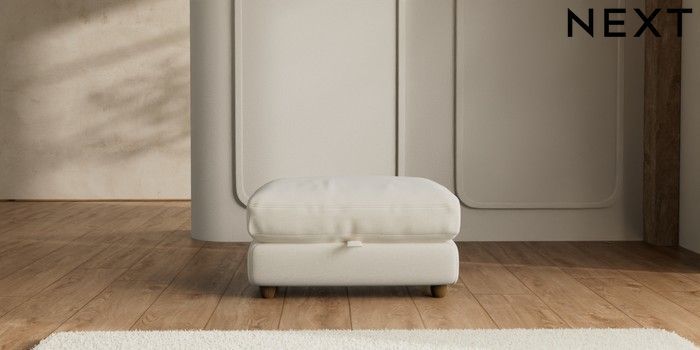 7.2.6 Buy N Premium Farndon Grand Relaxed Sit Storage Footstool Ripple Chenille Oyster Wooden Glide - Mid from the Next UK online shop Click here to use our accessible website