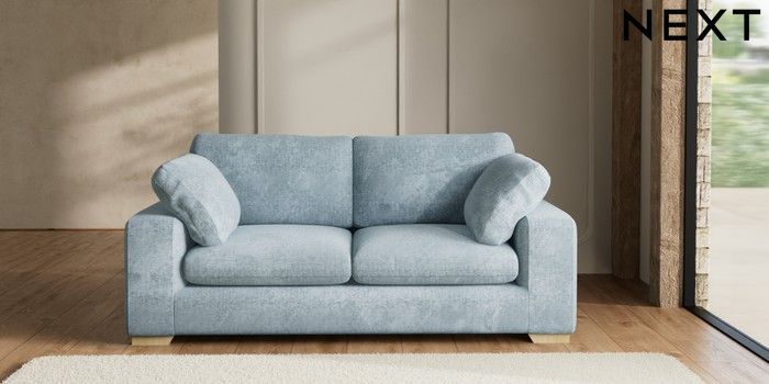 7.2.6 Buy N Premium The Snuggle Grand 3 Seater Sofa Plush Chenille Light Blue Large Square Angle - Light from the Next UK online shop Click here to use our accessible website