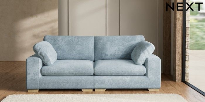 7.2.6 Buy N Premium The Snuggle Grand 4 Seater Large Sofa Plush Chenille Light Blue Large Square Angle - Light from the Next UK online shop Click here to use our accessible website