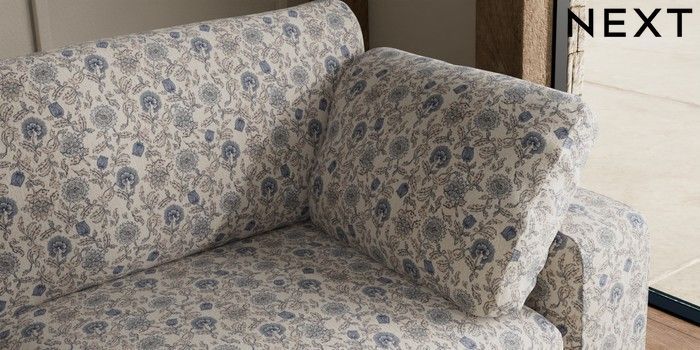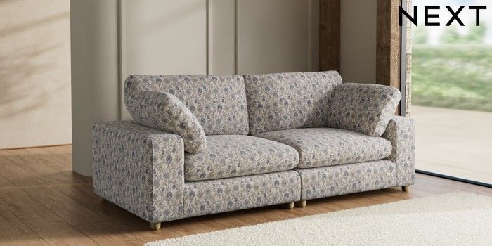 7.3.1 Buy N Premium The Snuggle Grand 4 Seater Large Sofa Relaxed Linen Look Print Woodblock Floral Blue Wooden Glide - Light from the Next UK online shop