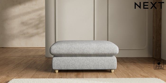7.2.6 Buy N Premium The Snuggle Grand Extra Large Footstool Chunky Boucle Easy Clean Light Grey Wooden Glide - Light from the Next UK online shop Click here to use our accessible website