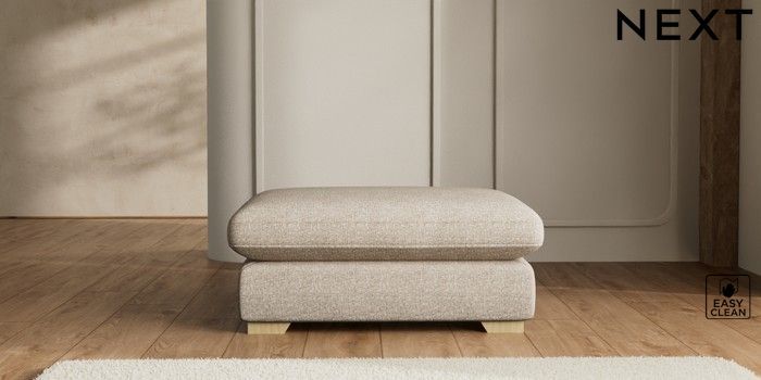 7.2.6 Buy N Premium The Snuggle Grand Extra Large Footstool Chunky Boucle Easy Clean Mid Natural Square Angle - Light from the Next UK online shop Click here to use our accessible website