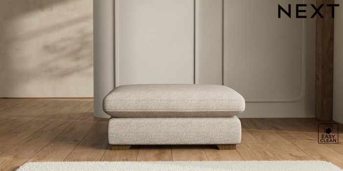 7.2.6 Buy N Premium The Snuggle Grand Extra Large Footstool Chunky Boucle Easy Clean Mid Natural Square Angle - Mid from the Next UK online shop Click here to use our accessible website