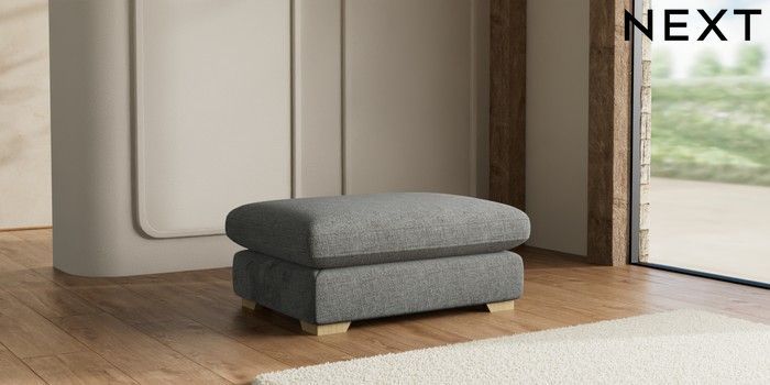 7.2.10 Buy N Premium The Snuggle Grand Extra Large Footstool Chunky Chenille Dark Grey Square Angle - Light from the Next UK online shop Click here to use our accessible website