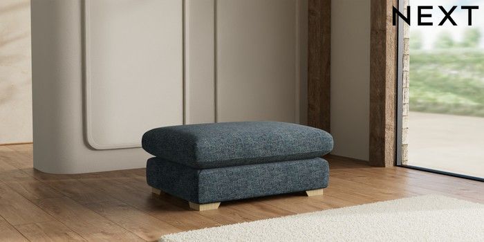 7.2.10 Buy N Premium The Snuggle Grand Extra Large Footstool Chunky Chenille Dark Navy Blue Square Angle - Light from the Next UK online shop Click here to use our accessible website