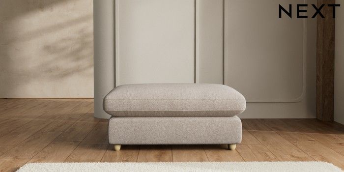 7.2.6 Buy N Premium The Snuggle Grand Extra Large Footstool Chunky Chenille Light Dove Wooden Glide - Light from the Next UK online shop Click here to use our accessible website
