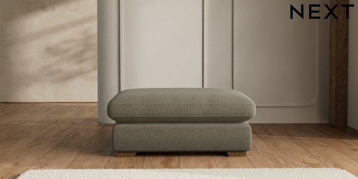 7.2.6 Buy N Premium The Snuggle Grand Extra Large Footstool Chunky Marl Light Olive Green Square Angle - Mid from the Next UK online shop Click here to use our accessible website