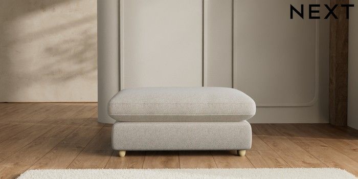 7.2.6 Buy N Premium The Snuggle Grand Extra Large Footstool Chunky Marl Oyster Wooden Glide - Light from the Next UK online shop Click here to use our accessible website