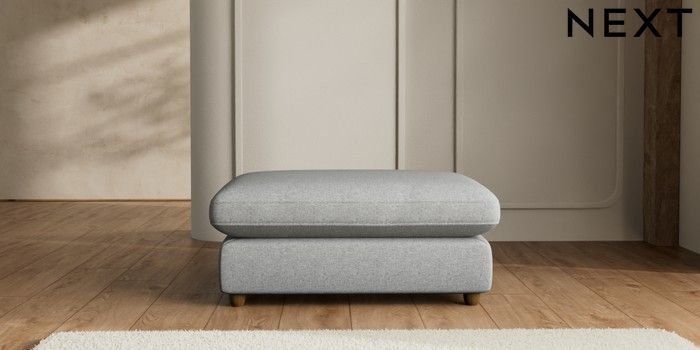 7.2.6 Buy N Premium The Snuggle Grand Extra Large Footstool Chunky Weave Mid Grey Wooden Glide - Mid from the Next UK online shop Click here to use our accessible website