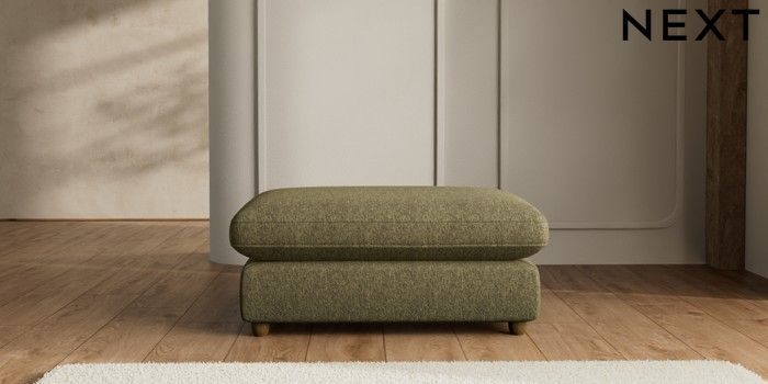 7.2.6 Buy N Premium The Snuggle Grand Extra Large Footstool Cotswold Chenille Dark Green Wooden Glide - Mid from the Next UK online shop Click here to use our accessible website