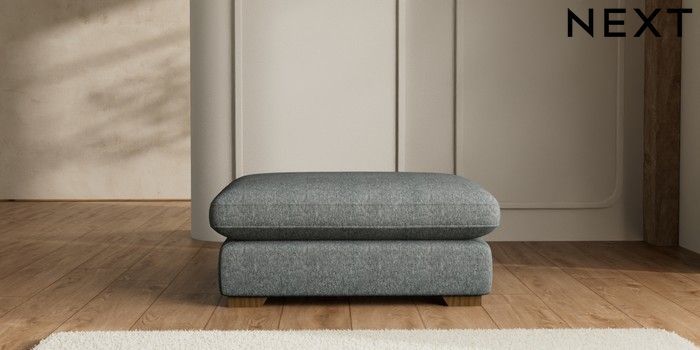 7.2.6 Buy N Premium The Snuggle Grand Extra Large Footstool Cotswold Chenille Dark Grey Square Angle - Mid from the Next UK online shop Click here to use our accessible website