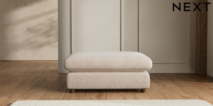 7.2.6 Buy N Premium The Snuggle Grand Extra Large Footstool Cotswold Chenille Light Natural Wooden Glide - Mid from the Next UK online shop Click here to use our accessible website