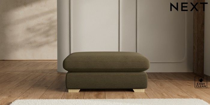 7.2.6 Buy N Premium The Snuggle Grand Extra Large Footstool Fine Chenille Easy Clean Dark Moss Green Square Angle - Light from the Next UK online shop Click here to use our accessible website