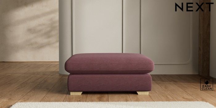 7.2.6 Buy N Premium The Snuggle Grand Extra Large Footstool Fine Chenille Easy Clean Mid Mulberry Purple Square Angle - Light from the Next UK online shop Click here to use our accessible website