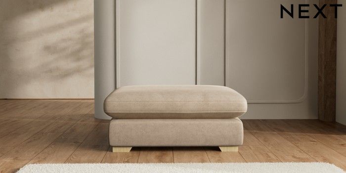 7.2.6 Buy N Premium The Snuggle Grand Extra Large Footstool Luxe Chenille Mid Camel Beige Square Angle - Light from the Next UK online shop Click here to use our accessible website