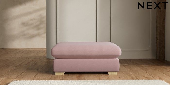 7.2.6 Buy N Premium The Snuggle Grand Extra Large Footstool Natural Mix Light Rose Pink Square Angle - Light from the Next UK online shop Click here to use our accessible website