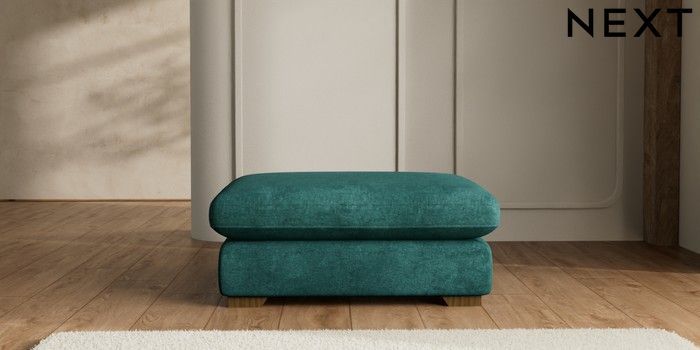 7.2.6 Buy N Premium The Snuggle Grand Extra Large Footstool Plush Chenille Dark Teal Green Square Angle - Mid from the Next UK online shop Click here to use our accessible website