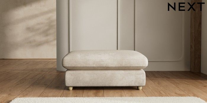 7.2.6 Buy N Premium The Snuggle Grand Extra Large Footstool Plush Chenille Light Natural Wooden Glide - Light from the Next UK online shop Click here to use our accessible website