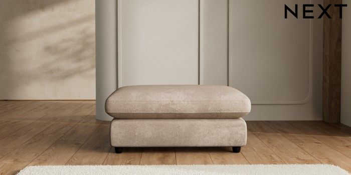 7.2.6 Buy N Premium The Snuggle Grand Extra Large Footstool Plush Chenille Mid Natural Wooden Glide - Dark from the Next UK online shop Click here to use our accessible website