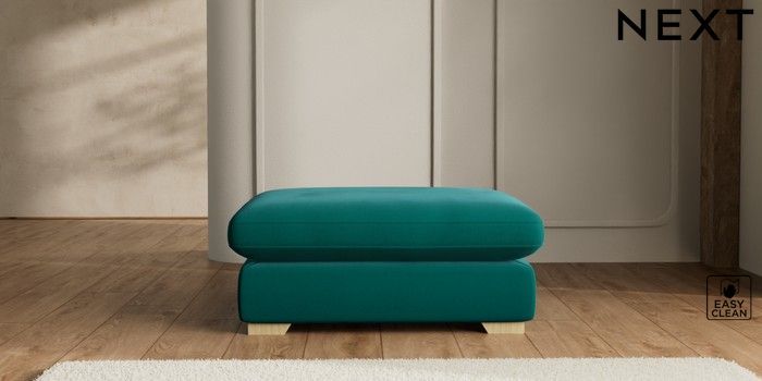 7.2.6 Buy N Premium The Snuggle Grand Extra Large Footstool Plush Velvet Easy Clean Juniper Green Square Angle - Light from the Next UK online shop Click here to use our accessible website